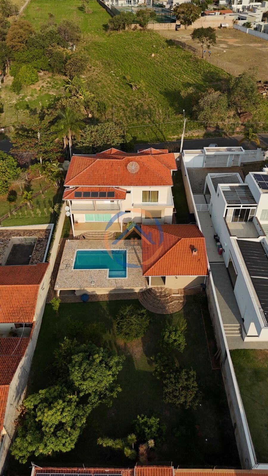 No piso térreo, destaque para os ambientes integrados e espaçosos: sala de estar e jantar, lavabo e uma cozinha planejada totalmente equipada com cooktop, coifa, forno elétrico e micro-ondas. A área gourmet é um verdadeiro convite ao lazer, com churrasqueira, armários planejados, piscina com cascata, banheiro externo e um pomar exuberante.